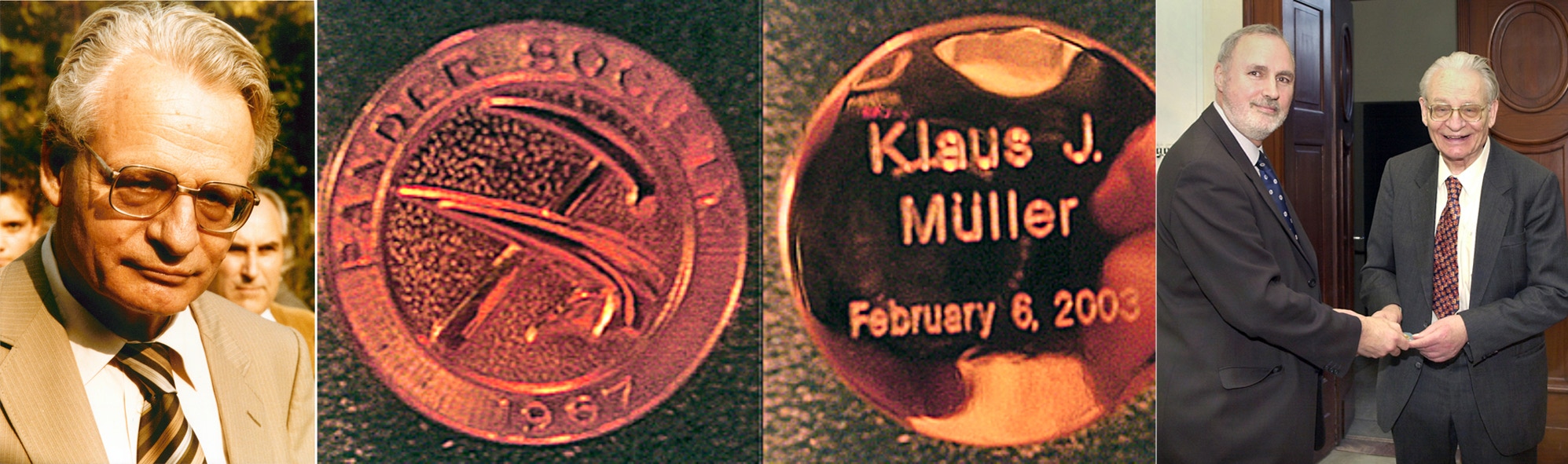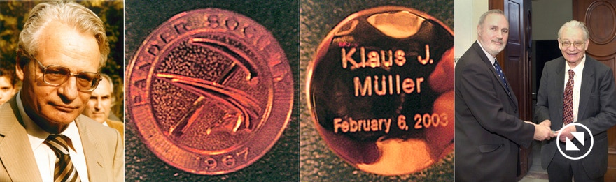 From left to right: Klaus 1986, Pander medal 2003, President Dick Aldridge and Klaus
