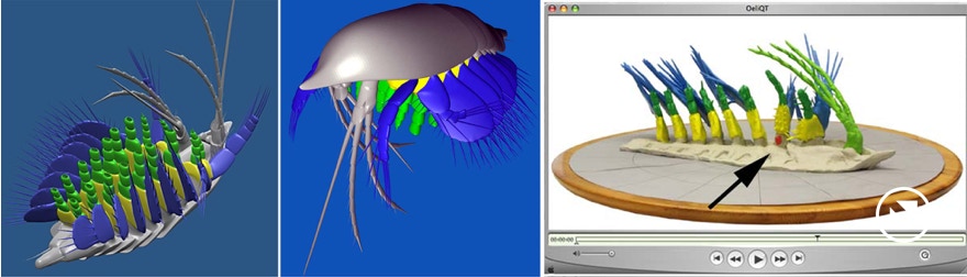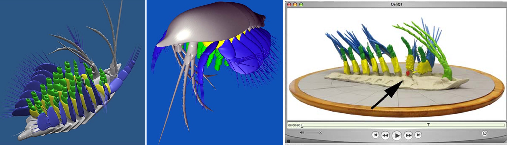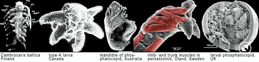 Already the first few months of Joachim's in-depth investigations indicated that new things could to be expected. Indeed his effort and enthusiasm led to a much better insight of the ontogeny of stem crustaceans, corrected various views based on our previously incomplete and, partly rough study from1990. The increased background in arthropods and the theory of Phylogenetic Systematic of all of us also helped much. Furthermore, Joachim's intensive studies of the larval cycles, morphogenetic changes and the 3D reconstructions (with Blender), initiated by Martin, brought us much forward in a better way of comparing the different taxa and to make comparisons with extant counterparts in terms of relationships or morphological/ecological similarities. Ontogenetic series as 3D models and through time were then called 4D, created by Joachim. More will be added step by step.