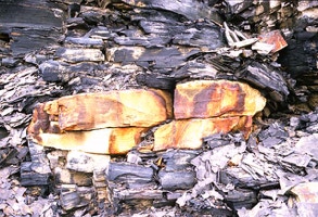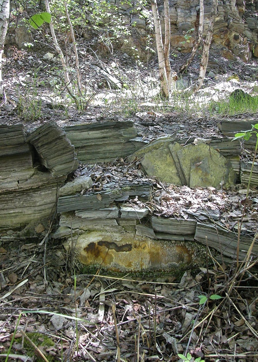 Right: Falbygden quarry again, closer view of the many nodules embeed within the shales.
