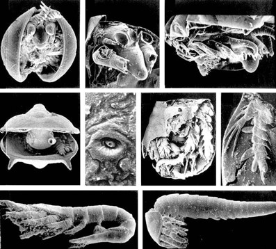 As said, 'Orsten' fossils have the great advantage in being three-dimensionally preserved and with all surface structures in place, their morphological order. Accordingly, they are much easier to interpret than any other fossil material. In fact, 'Orsten' fossils are preserved virtually as if they were just critical-point dried living organisms. Details range down to less than 1 µm and include pores, sensilla or minute secondary bristles on filter setae, spines and denticles, in rare cases even facets of so-called compound eyes. 'Orsten' fossils are, generally, small, i.e., smaller than one centimeter, therefore give an insight of benthic life at small scale, hence including also animals of the small-size life zone or meiofauna. Therefore, it is not surprising that our material contains also many ontogenetic stages, down to the earliest larvae hatching from an egg. In some cases, we were able to establish sets of successive stages, the longest being that of Rehbachiella kinnekullensis with 30 stages. From larger fragments we even know that this series is still not complete. Possibly due to impregnation by phosphate, most of the specimens are hollow carcasses, but some specimens may also be completely solid, the reasons of it are still unknown.