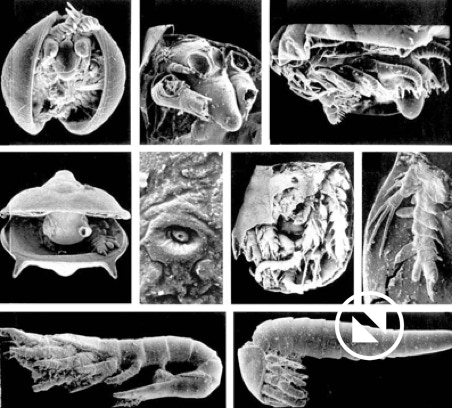 Left: Examples of arthropod fossils in 'Orsten'-type preservation; Right: Fossils as living animals