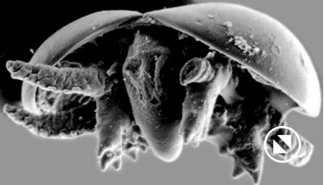 According to our experience, only very few of the Swedish 'Orsten' nodules we collected yielded phosphatized arthropod remains. In fact, only two nodules from the Gum quarry at Kinnekulle, Västergötland, yielded the bulk of our material. Most of the nodules, representing a time frame of at least 1 million years, have yielded few to single specimens, if at all.! Accordingly, it is unlikely that the fossils represent an allochthonous thanatocoenosis or have been killed in a event comparable to stagnant, anoxic conditions at certain times during a year, as occurring today in the Baltic Sea sometimes or in the Mediterranean Sea. More or less they represent the very rare event of preservation – such as the Ötzi in a glacier in the Alps.