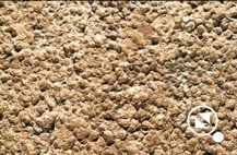 Center: Surface of a fractured nodule with countless number of agnostid shields. Often these are sorted (dot = 5 mm). Walnut-size pieces of this rock have been dissolved to receive the non-calcitic content.