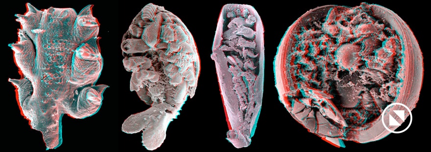 Example images: Enjoy this set of stereo images of some of our 500,000,000 years old fossils in 3D. All you need are red-green-blue spectacles; TV glasses are less useful since their red is too dark and green to light. You will see that not all specimens and views work well.