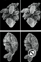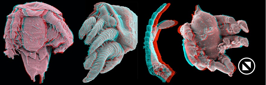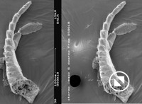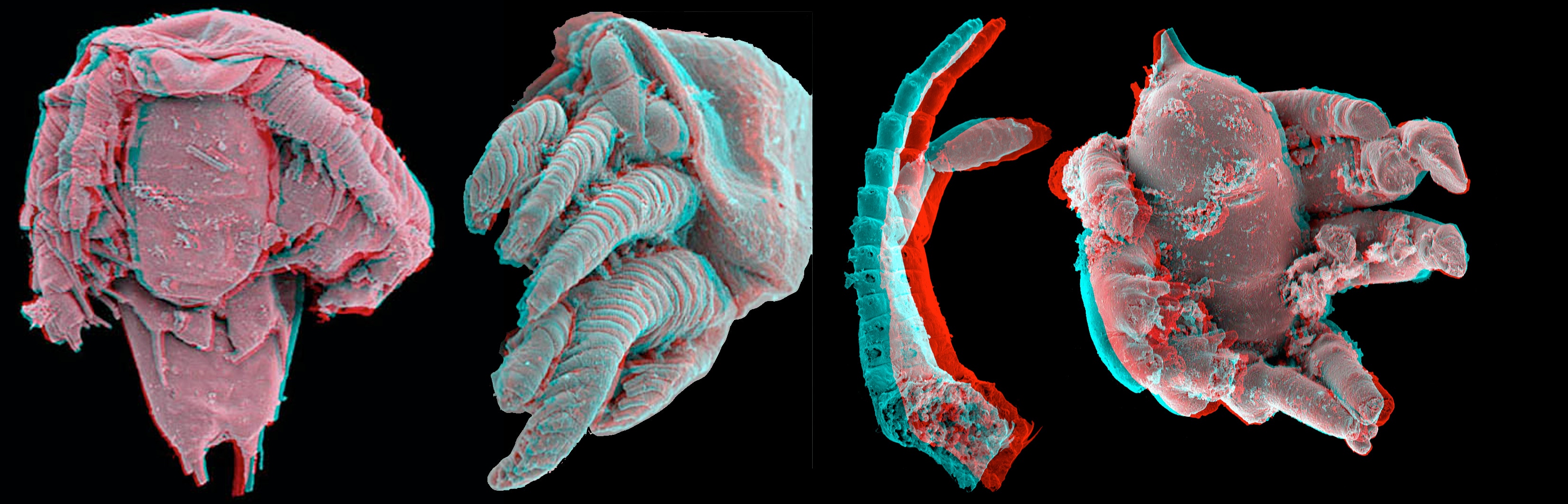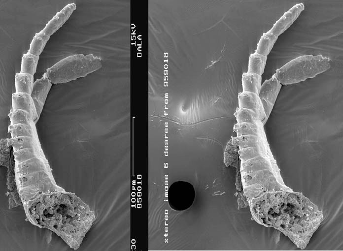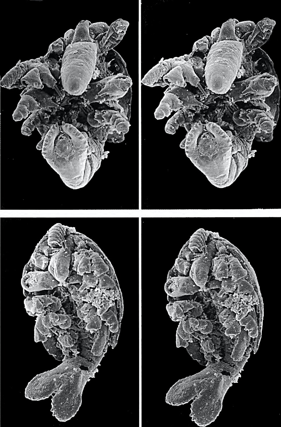 - 2. To start with, you can download these two stereo pairs of images. They don't fit too well, but are good for practising (the animal is called Dala peilertae and is a small Orsten crustacean, the pictures depict a trunk limb and a part of the trunk from ventral). Double-click on them to receive the larger versions and copy them to your computer. Then cut the images in a program like Adobe PS to have a left and right picture. That you have the left one left you can see by clicking on them. The left should be tilted against the other one.